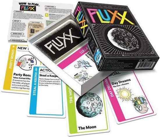 Een snel kaartspel, waarbij het doel en de spelregels van het spel telkens veranderd worden door het spelen van kaarten.