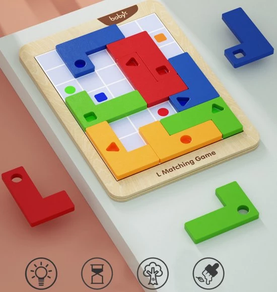 Boby Denkspel Met 30 Opdrachten – Montessori Speelgoed Tangram Vormen Puzzel – Houten Speelgoed Tetris Spel – Educatief Puzzel Voor Ruimtelijk Inzicht