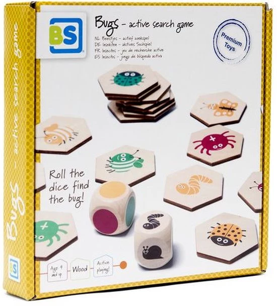 Verstop alle 18 houten chips met beestjes en gooi met de dobbelstenen. Wie vindt als eerste het overeenkomstige beest? Leg de chips ver uit elkaar in het gras voor een actief buitenspel of verstop ze in huis voor een snel zoekspel.