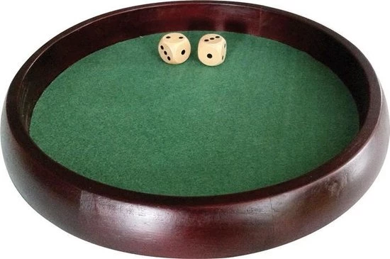 Een ronde poker- en dobbelpiste van donkerbruin, rubberhout.