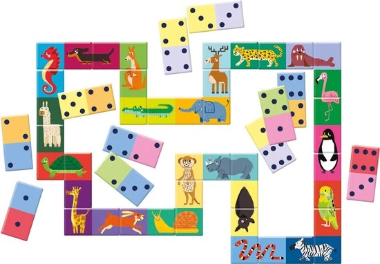 Een speciale dominoset met 28 dubbelzijdige kaarten waarmee je alles over dieren en cijfers ontdekt! Wanneer ze met deze kaarten spelen, worden kinderen gestimuleerd om na te denken over de afbeeldingen, de dierenfiguren bij elkaar te leggen en ontwikkelen ze hun rekenvermogen door ze bij de juiste hoeveelheden te leggen. Gemaakt in Italië.