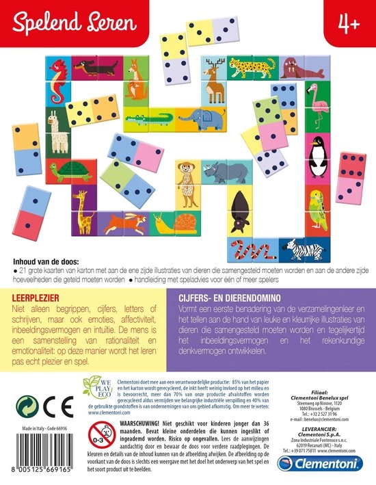 Clementoni Spelend Leren Dierendomino Educatief Spel