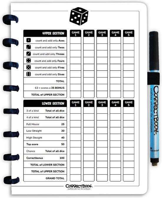 Dit duurzame uitwisbare spelletjesboek zorgt voor eindeloos speelplezier. Leuk om mee te nemen als vakantieboek in de handige opbergdoos. Hoe werkt het? Er zitten veertien spelletjes in dit spelletjesboek. We hebben alle spelletjes zo ingedeeld dat je de pagina’s er makkelijk uit kan klikken om alle spelletjes samen (met maximaal 4 personen) te spelen!
