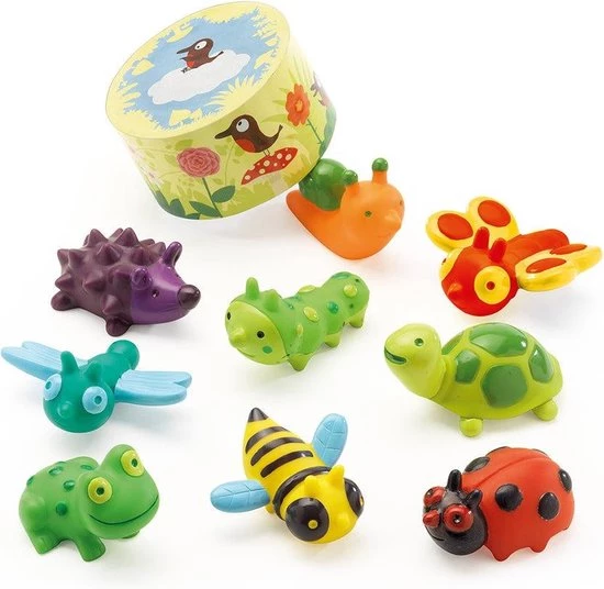 Bevat 9 diertjes, 1 verstop doosje en 15 kartonnen fiches