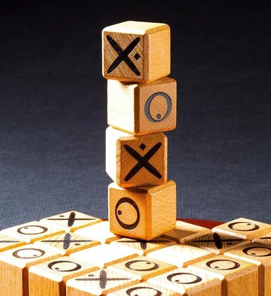 Quixo: Kubussen die bewegen… en alles veranderen! 25 kubussen zijn gevangen op een speelbord. Beurtelings pakken de spelers een kubus en leggen die neer volgens het principe van de riskja. De winaar is de speler die als eerste een lijn van 5 eigen kubussen maakt.