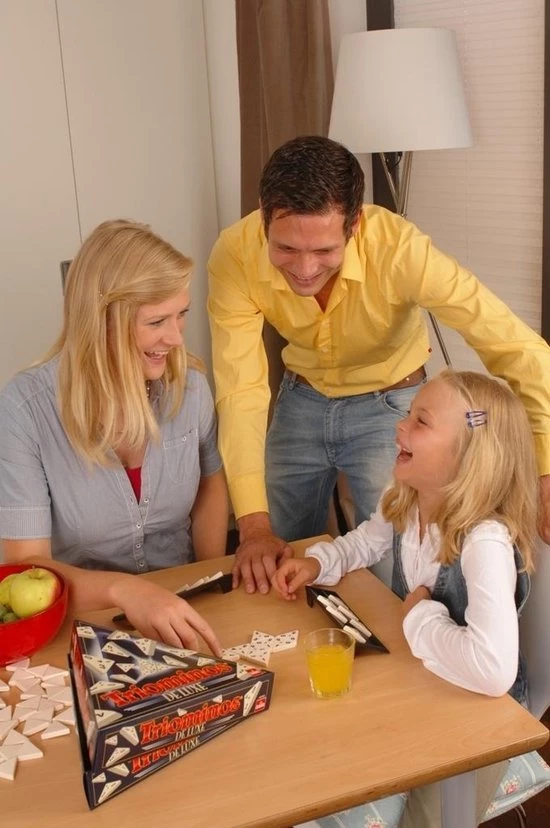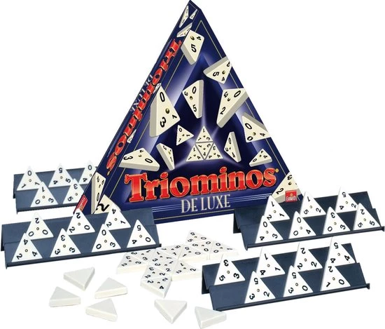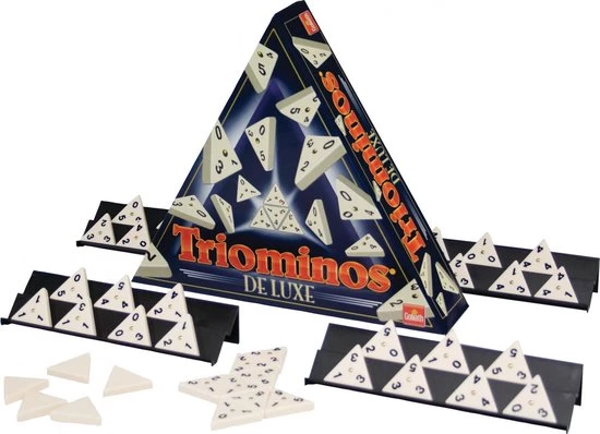 Het originele Triominos spel! Een tactisch spel met driehoekige, genummerde stenen. Zoek je kansen, leg ze snel aan en scoor zo veel mogelijk punten. Bij dit spel gaat het niet alleen om inzicht maar ook om tactisch spelen; Sommige aangelegde figuren leveren je namelijk ook veel punten op!