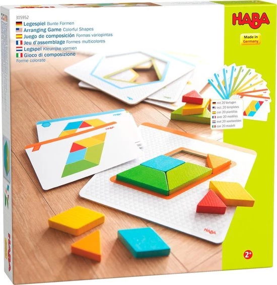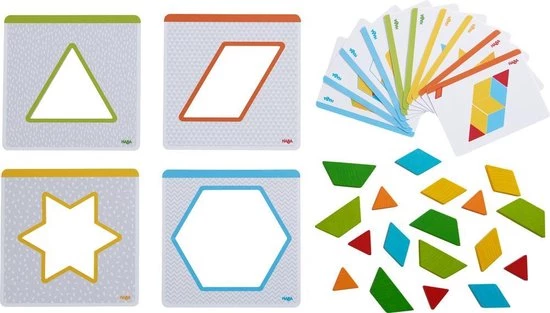Dit legspel ontplooit de creativiteit van kleine legkunstenaars! Als de stukken op de juiste manier op de bijbehorende legborden worden gelegd, ontstaan kleurrijke vormen zoals sterren of driehoeken. Maar ook als ze door elkaar worden gelegd, worden bonte figuren gecre?erd. Met de ontelbare legvarianten en felle kleuren is eindeloos speelplezier verzekerd.