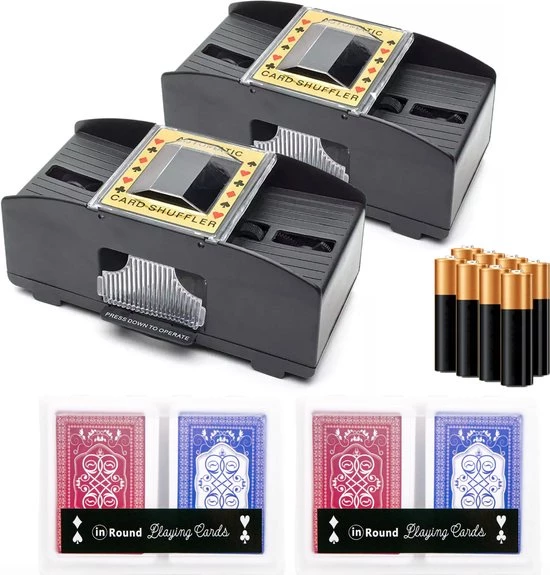 Maar vanaf nu is dat voor altijd anders, dankzij de In Round kaartschudmachine. Dit apparaat schudt maximaal twee setjes kaarten in seconden! Ideaal voor als je er zelf helemaal geen zin in hebt of er niet goed in bent. Daarnaast zorgt het er ook voor dat je niet meer beschuldigd kunt worden van valsspelen omdat je net iets te verdacht die kaarten hebt lopen schudden.