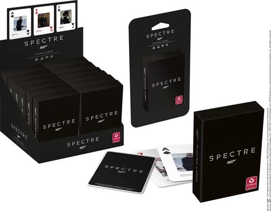 Poker speelkaarten ge?llustreerd met 52 foto’s uit de nieuwste James Bond film; Spectre. De speelkaarten zijn van hoge kwaliteit en uitgevoerd in pokerformaat.