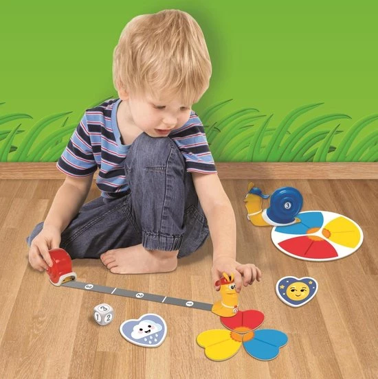 3 slakken (geel, blauw en rood) staan aan de start. Iedere speler gooit met de dobbelsteen; de slak gaat, dankzij de slimme rolmaat in zijn slakkenhuis, van de ene naar de andere bloem. Draai je een bloemblaadje om en krijg je de regenwolk, dan gooi je opnieuw. Krijg je het klavertjevier, dan ga je naar de bloem die je wilt hebben. Krijg je de maan, dan sla je een beurt over en is het de zon, dan ga je terug naar de start. Wie is de snelste en heeft als eerste al zijn bloemblaadjes bij elkaar? Op 3 manieren te spelen.