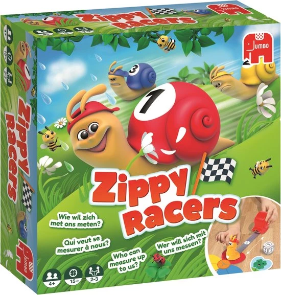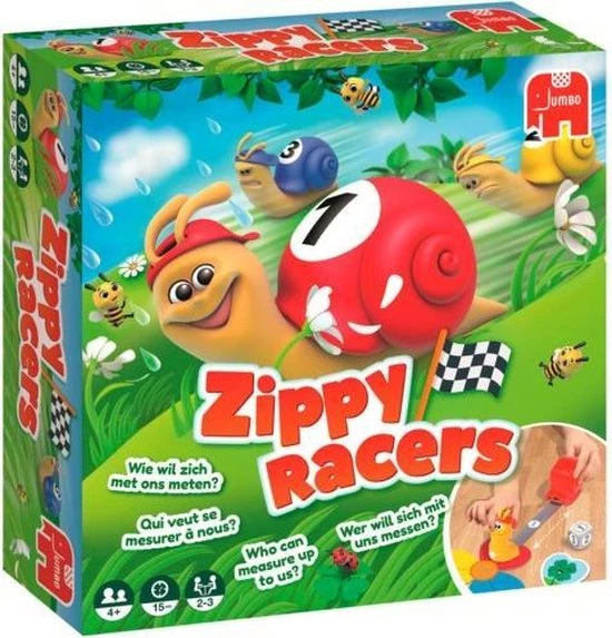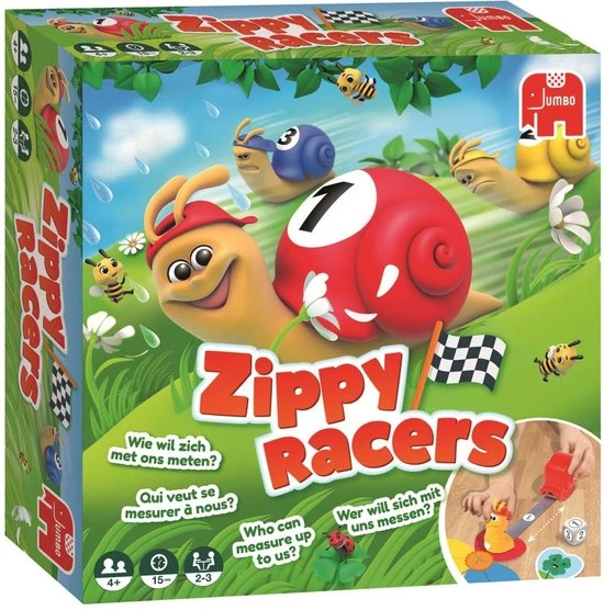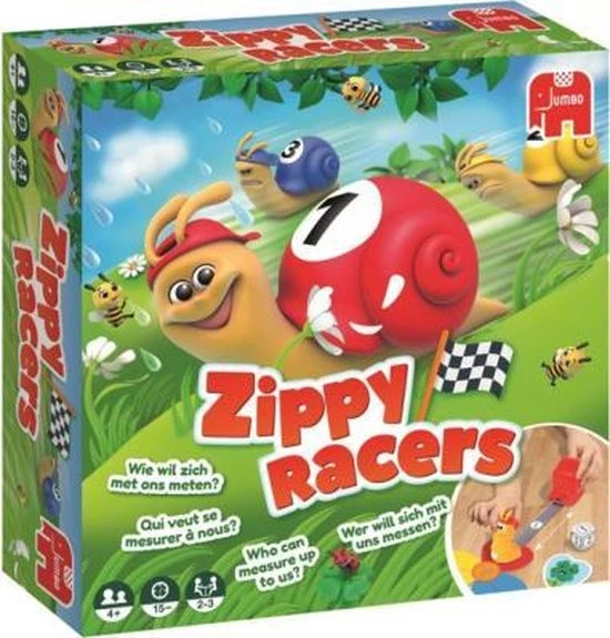 Zippy Racers, een hilarisch slakken spel met een lang parcours dat je door het hele huis kunt spelen.
