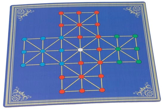 Halma wordt ook wel Chinees dammen genoemd. Je speelt met twee spelers. Het doel van het spel is om de eigen pionnen alle na een complete ronde over het circuit thuis te spelen op de vier eindvelden.