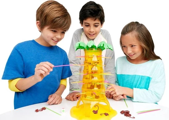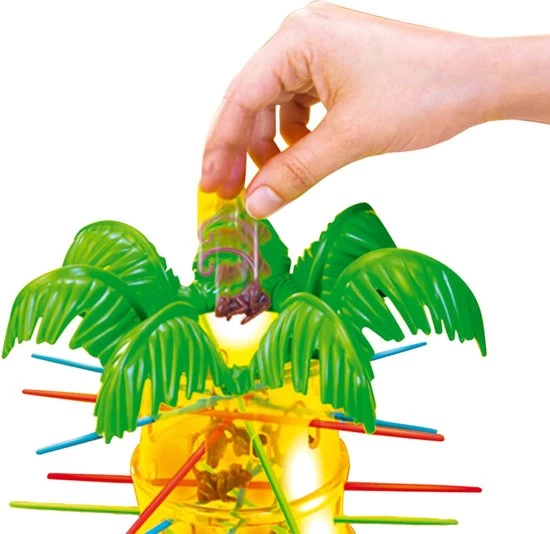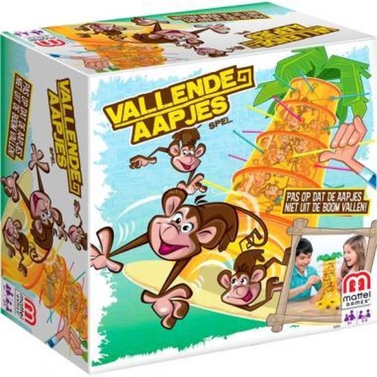 Van dit behendigheidsspel van Mattel word je echt apendol! Laat de apen door een gat boven in de doorzichtige boom vallen, nadat je stokjes van elke kleur door de gaten hebt gestoken. Elke speler gooit met een dobbelsteen en haalt alleen die kleur stokjes eruit die de dobbelsteen aangeeft. Maar pas op, de aapjes vallen uit de boom. De speler met de minst gevallen aapjes wint!