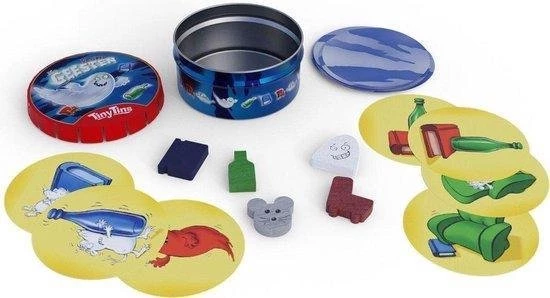 Hoe handig zou het zijn als je je favoriete spelletje in je broek- of jaszak zou kunnen meenemen? Daarom brengen we Vlotte Geesten nu ook in miniformaat uit. De tin is zo groot als een pepermuntdoosje, waardoor je het spel overal kunt spelen. En natuurlijk ook heel leuk om ze te verzamelen!