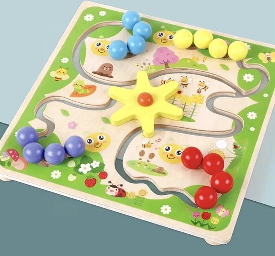 Verpakkingsinhoud: Houten rups bordspel/ labyrint/ schuifpuzzel – Kinderpuzzel vanaf 3 jaa