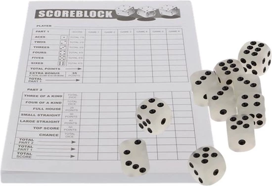 - De spelregels van Yahtzee worden gratis mee geleverd