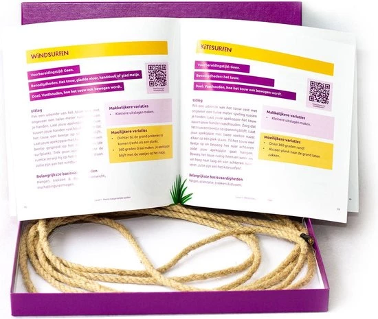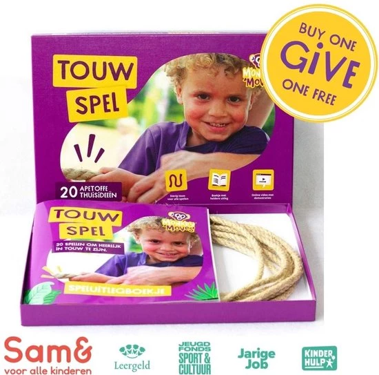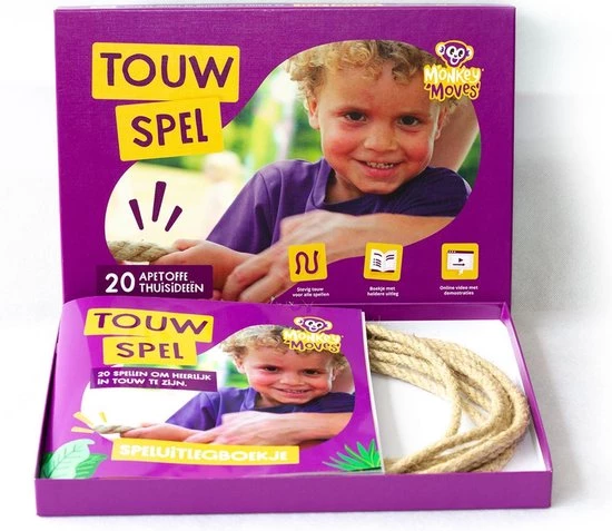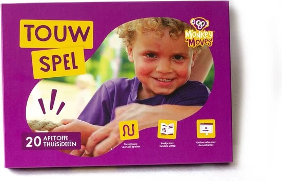 Monkey Moves wil kinderen d? start geven van een leven lang gezond bewegen. Speciaal hiervoor hebben we dit touwspel ontwikkeld. Hiermee kun je samen met je kind thuis bewegen met wel 20 verschillende spellen die we al voor je hebben bedacht. De spellen dragen bij aan de motorische ontwikkeling van jouw kind, maar zijn vooral zo leuk dat stilzitten geen optie meer is. Het spellenboek is ontwikkeld door de bewegingswetenschappers, fysiotherapeuten en specialisten van het jonge kind van Monkey Moves.