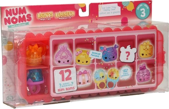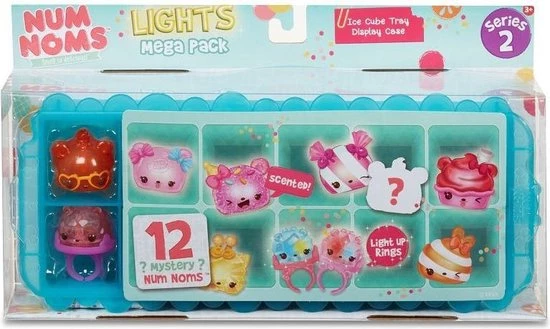 Num Noms zijn een mix van schattigheid en een snufje verrassing. Meng een Num en een Nom om je eigen smaakmengsel te maken. Met zoveel geurige combinaties is het recept altijd perfect. Num Noms zijn de schattigste minigerechten! En ze ruiken ZO heerlijk! Num Noms Lichtjes geven echt licht in twee kleuren! Je kunt ze nu dragen als ring! Stapel de Nums boven op de Noms om meer dan 300 zoet geurende combinaties te maken. In deze lichtjes serie 2 vind je gummies, snoep en slush. De set bevat 12 Num Noms: negen geurige Nums in diverse smaken, inclusief acht verrassings-Nums en drie geurige Noms, die licht geven in twee kleuren! Ook zijn er drie ringbasissen voor de Noms. Verpakt in een ijsklontjesbak die ook als display kan worden gebruikt. Verzamel ze allemaal! Geschikt voor kinderen vanaf 3 jaar.