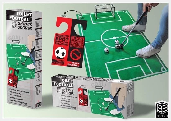 De wc: we kunnen er uren zitten. Met de nieuwste Donald Duck, je smartphone of natuurlijk met het Toilet Football spel. Hierin zit een wc-mat met een voetbalveld, een golfstick met voetbalschoen, twee voetballetjes en natuurlijk een doel. Zo kan je lekker je penalty’s oefenen tijdens je grote behoefte.