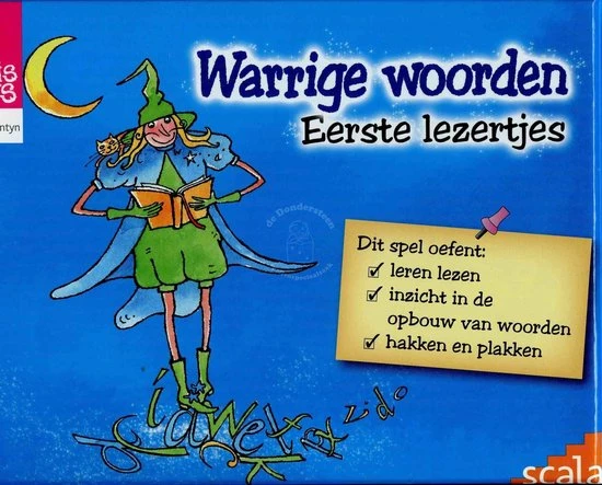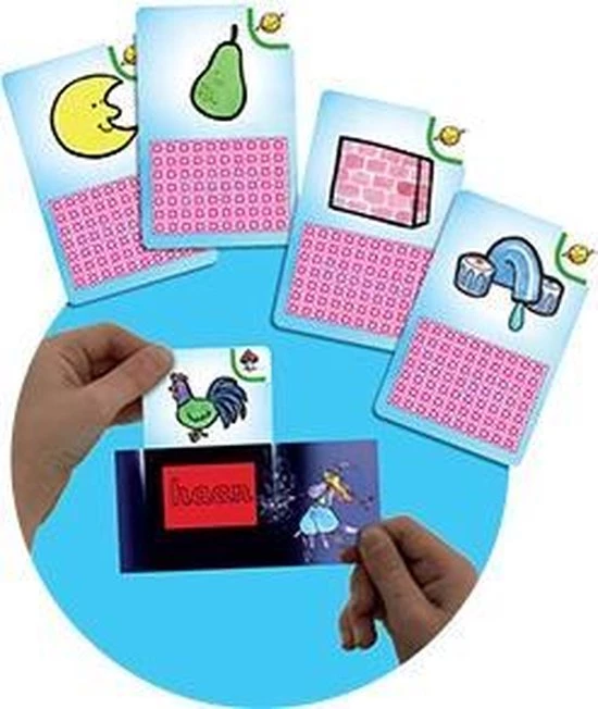 Met dit kwartetspel oefen je leren lezen en krijg je inzicht in de opbouw van woorden. Bekijk de afbeelding op het kaartje en spel het woord (hakken). Plak de letters aan elkaar en lees het woord hardop (plakken). Alle kaartjes hebben een symbooltje. Er zijn er steeds 4 met hetzelfde symbool. Verzamel ze alle 4, dan heb je een kwartet. Vraag aan je tegenstander of hij de kaart heeft die je zoekt en voer de opdracht op het kaartje uit. Controleer je antwoord met de magische envelop. Schuif je kaartje erin en je ziet meteen of je het goed hebt. Wie de meeste kwartetten verzamelt, is de winnaar. Je kunt het ook als potspelletje spelen: wie de meeste kaartjes goed heeft in een bepaalde tijd. Of om zelfstandig mee te oefenen. Inhoud: 76 opdrachtkaartjes, magische envelop, spelregels in stevig doosje met sorteervakken Formaat 200 x 150 x 50 vanaf 6 jaar Voor 1 ??? 4 spelers of teams, of om zelfstandig mee te oefenen.