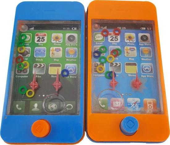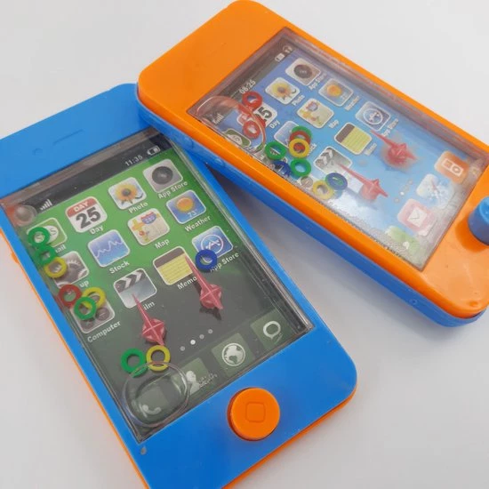 Set van 2x Watergame Ring Waterspel in de vorm van een speelgoed telefoon. Super verslavend behendigheidsspel voor jong en oud! Lukt het jou om alle ringetjes om de stokjes te krijgen? Het is een behendigheidsspelletje en geduldspelletje. Het spel is 11,2 x 5,6 cm en gemakkelijk vast te houden. Er zit ook 1 drukknop op waarmee je het water rond kan pompen. Daarbij moet je precies te werk gaan om alle ringetjes om de stokjes te krijgen.