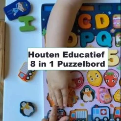 Merkloos Puzzelbord 8-in-1 – Montessori Speelgoed Puzzel – Cijfers Letters