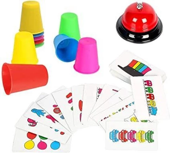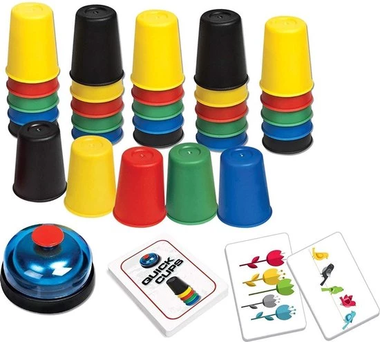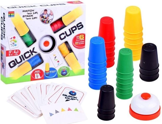 De snelste speler om hun bekers in de juiste volgorde te stapelen en eerst aanbelt, wint de ronde. Speel 24 snel bewegende rondes en wie de meeste kaarten heeft aan het eind, wint! Neem Quick Cups mee naar huis met het snelle en hectische leuke combinaties van bekers en zie hoe je het doet