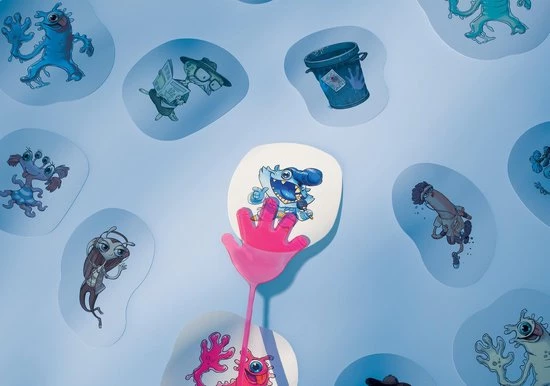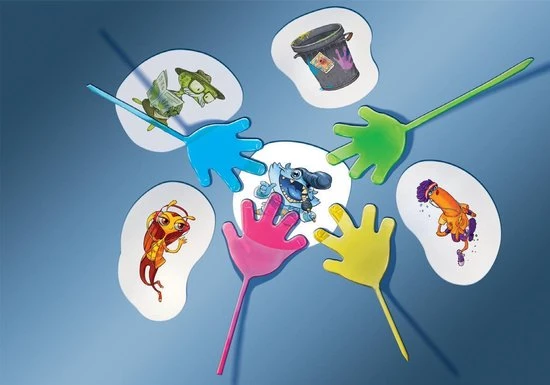 | Verpakkingsinhoud | 4, plakhanden, 10, stadsmonsters, 1, vuilnisbak, 1, draaischijf, met, pijl, 4, glibbermonsters, 4, speel, guren, spelregels |