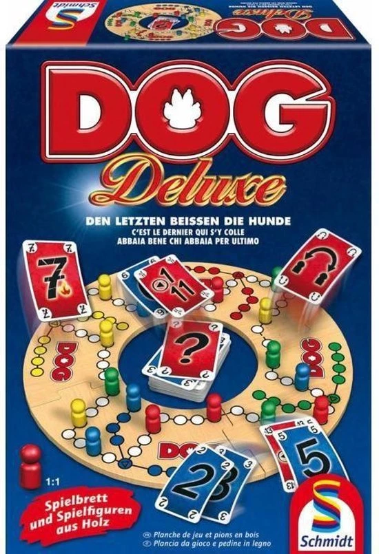De populaire succesnummer DOG komt hier in een stijlvolle Deluxe-variant met grote spelscherm en spelfiguren van hout. Door het modulaire speelveld kunnen de 2-teams nu ook de kleurcombinaties spelen die voor u het meest bevallen. Ook bij dit spannende taktikspiel met spel aantrekkingskracht betekent het ”den laatste bijten de honden.