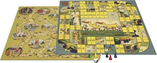 Ga terug in de tijd om te zien wat voor bordspellen je ouders en oma en opa speelden, toen zij klein waren! Ze hadden geen tv of computer om zich mee te vermaken op een regenachtige dag. Dus legden ze een bordspel op tafel en vermaakten zich kostelijk met familie, vriendjes en vriendinnetjes. In deze doos zitten twee verschillende spellen, Ganzenbord en Matt de Reiziger. Probeer de finish te bereiken, voordat de andere spelers daar zijn. Maar blijf opletten! Er zijn hindernissen en valkuilen onderweg!