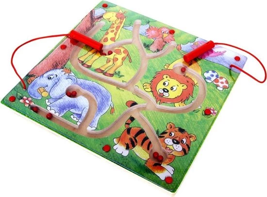 De houten pennen en magneten worden over het oppervlak geleid en nemen daarbij de kleine kleurige bolletjes mee. Een leuk en interessant behendigheidsspel voor het oefenen van de motoriek.
