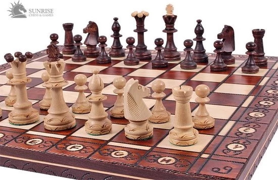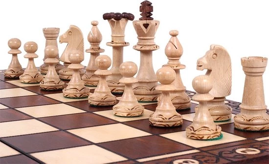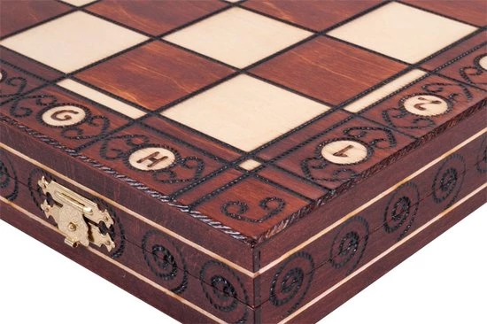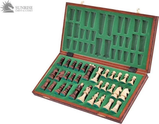 | Verpakkingsinhoud | Een, uitklapbaar, houten, schaakspel, 32, schaakstukken. |