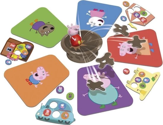 Modder Feest! 1. Gooi Peppa in de modder en probeer de andere spelers onder te spetteren. 2. Ontvang een muntje voor elke succesvolle spetter en plaats het op je kaart. 3. Spetter als eerste iedereen onder om te winnen! Bevat een uitdagendere versie voor ervaren spelers!