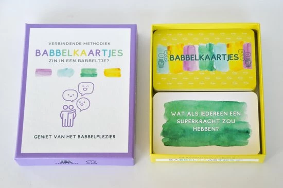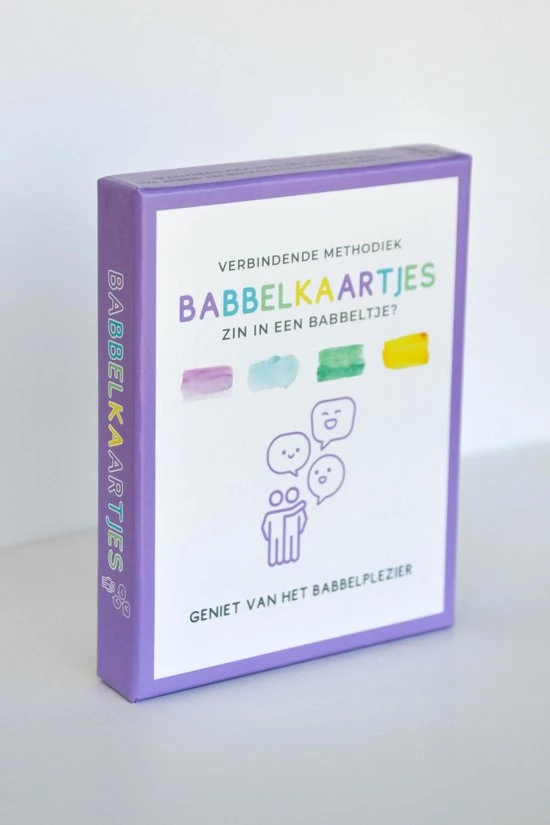 ?Babbelkaartjes? is een verbindende methodiek van 56 babbelkaarten en 4 uitlegkaarten waarmee je inzet op bewustwording, identiteitsontwikkeling, verbinding en creatief denken.