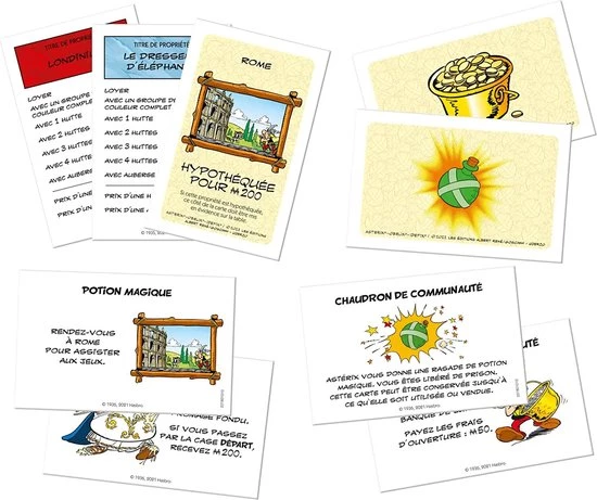 In deze speciale editie van Asterix Monopoly vind je alle iconische personages uit de strip. Bouw hutten en herbergen, trek Magic Potion en Community Cauldron kaarten, om snel je doel te bereiken: de laatste zijn die niet failliet gaat.